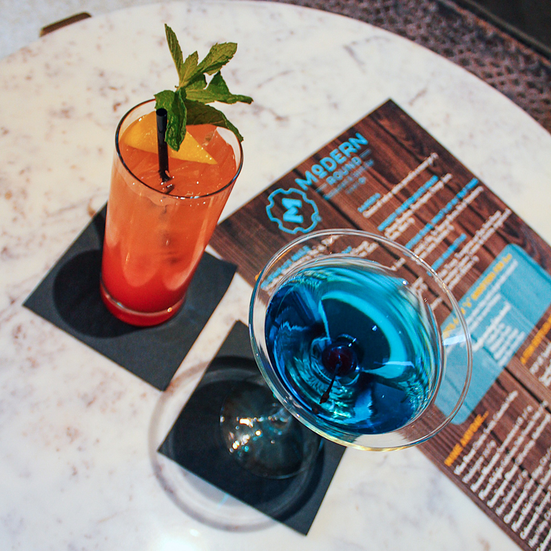 From Mojitos to Manhattans, we offer a large selection of hand-crafted cocktails, fine wines, and the coldest draft beers in town. Try one of our own Modern Round Mixologists Signature cocktails include our Sangrias, rimmed cocktails and make special mention of the Malibu Mermaid that is not on any menu, but ask your bartender.
